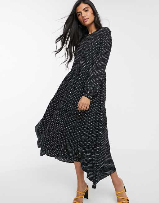 Product id: Warehouse polka dot hot sale tiered midi dress
